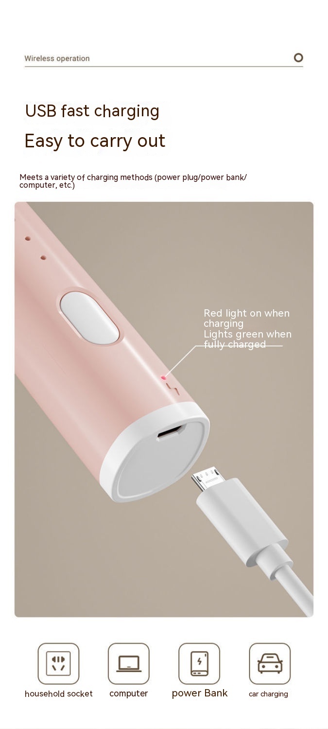 Works great and perfect to keep at work it’s nice and slender and I like that it’s rechargeable